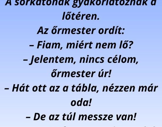 Vicc: A sorkatonák gyakorlatoznak a lőtéren.