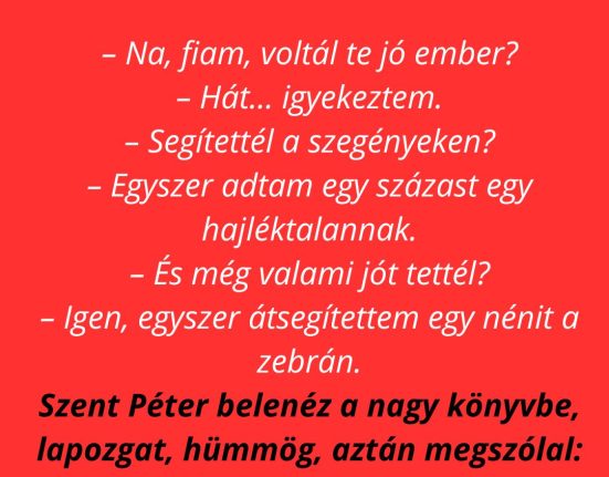 Vicc: Meghal egy fickó, feljut a mennyország kapujához, ahol Szent Péter várja.