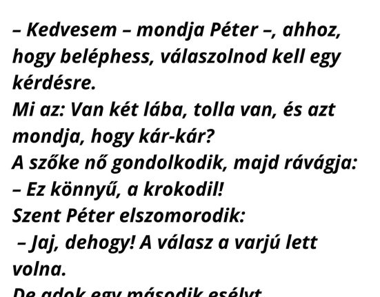 A szőke nő megérkezik a Mennyország kapujához, ahol Szent Péter fogadja.