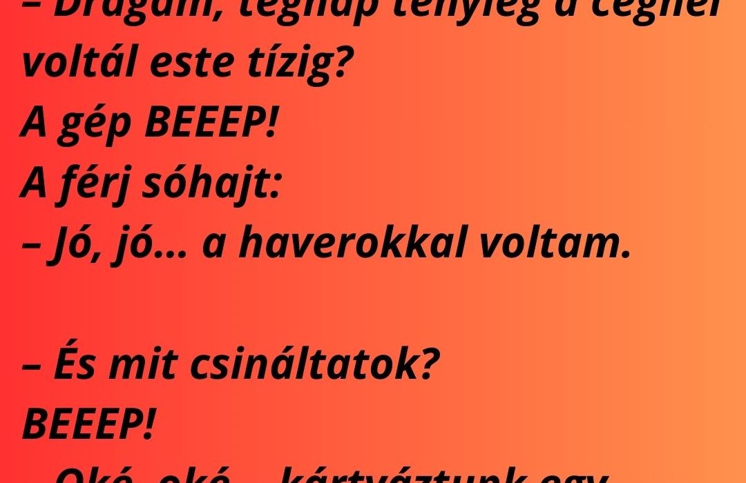 – Drágám, tegnap tényleg a cégnél voltál este tízig?