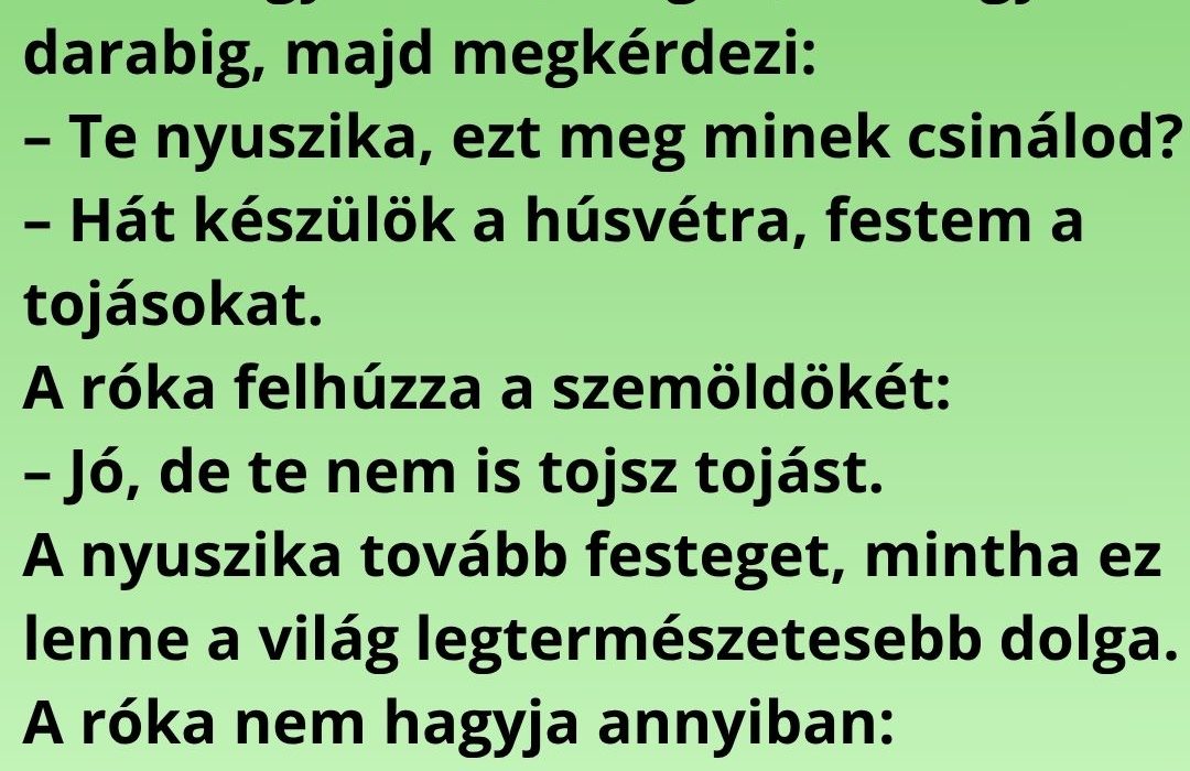 Arra megy a róka, megáll, nézi egy darabig, majd megkérdezi:
