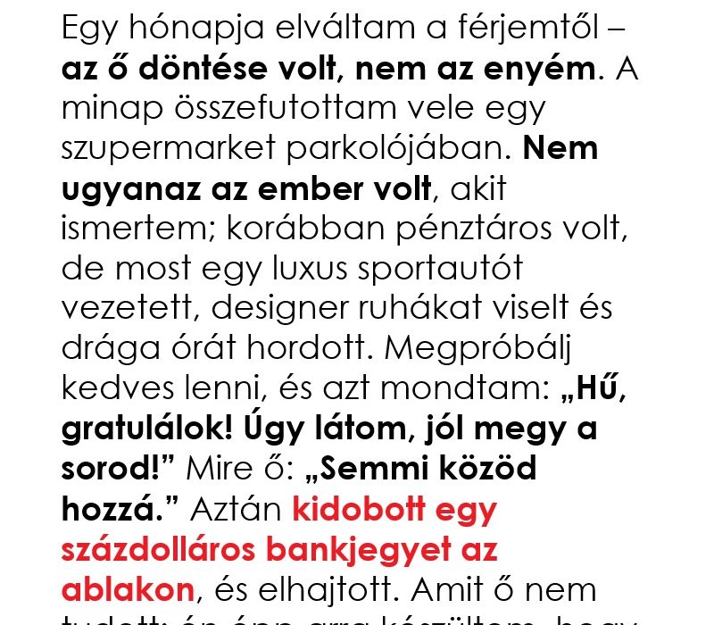 Katherine csendes napja félbeszakadt, amikor a szupermarket parkolójában megpillantott egy makulátlan, fehér sportautót. A kocsiból Michael szállt ki, az exférje.