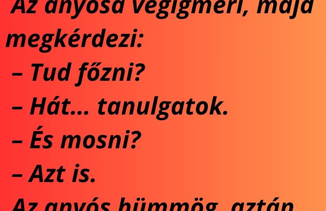 Az anyós hümmög, aztán este odaszól a vejének: