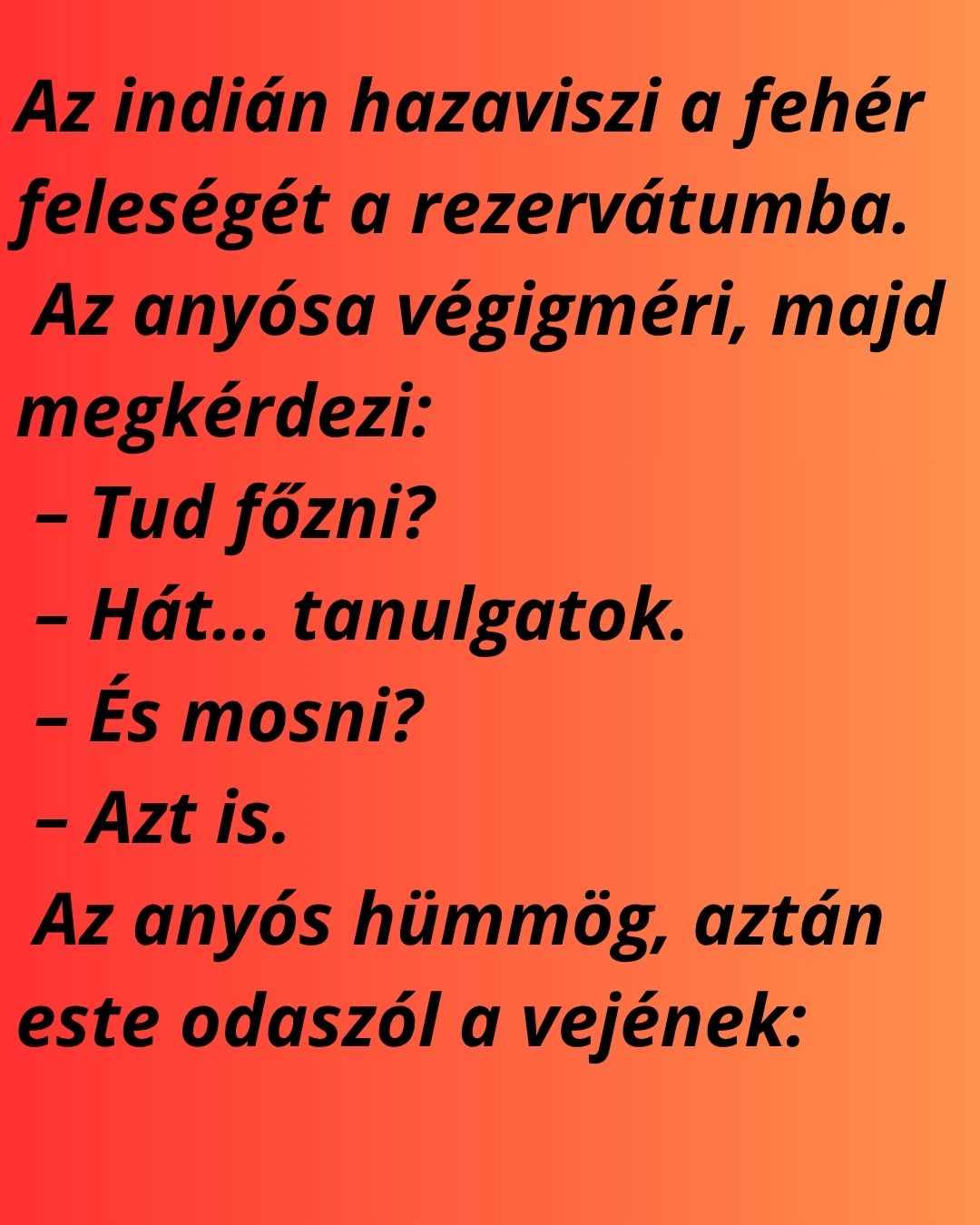 Az indián anyós megszólal vacsora közben: