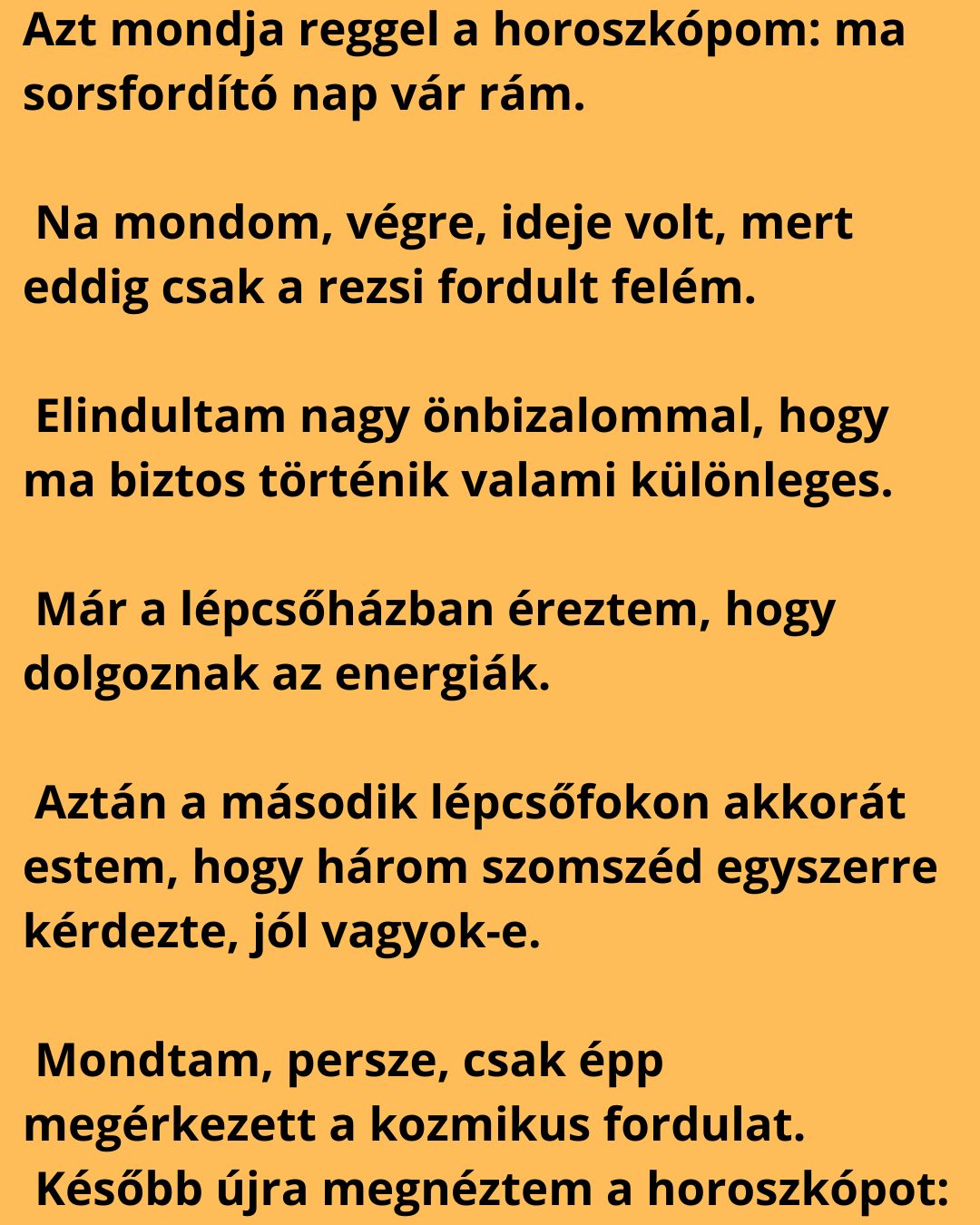 Azt mondja reggel a horoszkópom: ma sorsfordító nap vár rám.