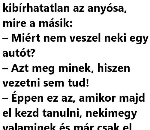 – Tudod, az anyósom olyan gyorsan beszél, hogy amikor megszólal, én már másfél üveg bor után sem értem meg a felét.