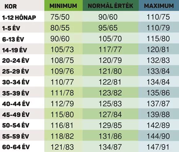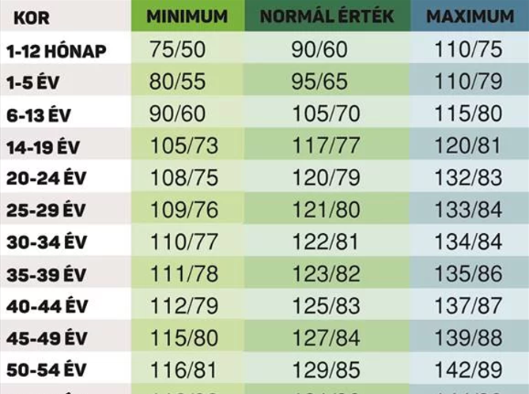 Amennyiben valakinek magas a vérnyomása érdemes egyrészt orvoshoz fordulnia, másrészt pedig bizonyos változásokat beiktatni az Életébe, így többek között több mozgás, oda érdemes figyelni az étkezésre, és megfelelő mennyiséget aludni. Íme tehát az egyes értékek korosztályonként: