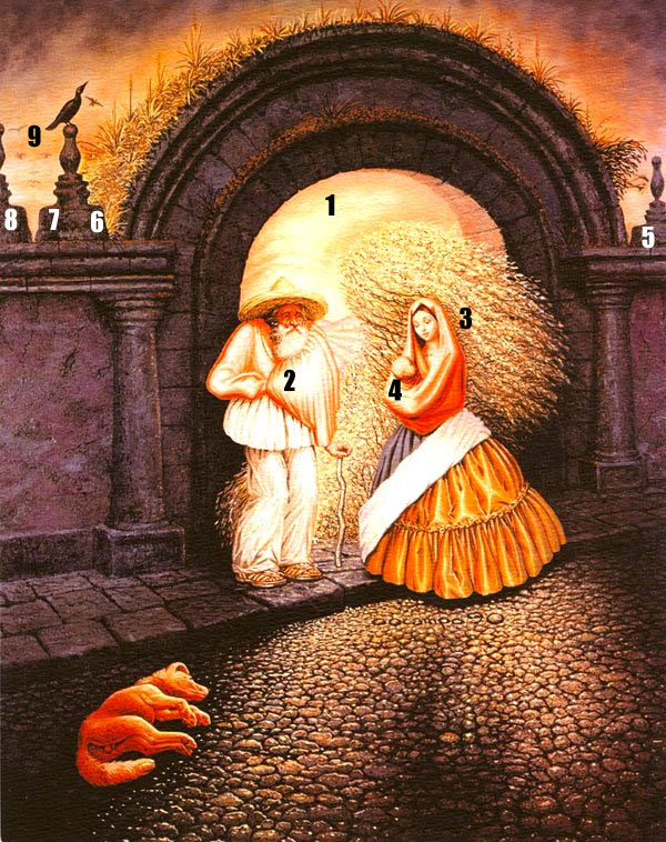Az optikai csalódások és a vizuális képességeket fejlesztő feladatok lehetővé teszik számunkra, hogy leelenőrizzük a kritikus gondolkodási képességünket. Ezt a festményt Octavio Ocampo, mexikói művész alkotta.