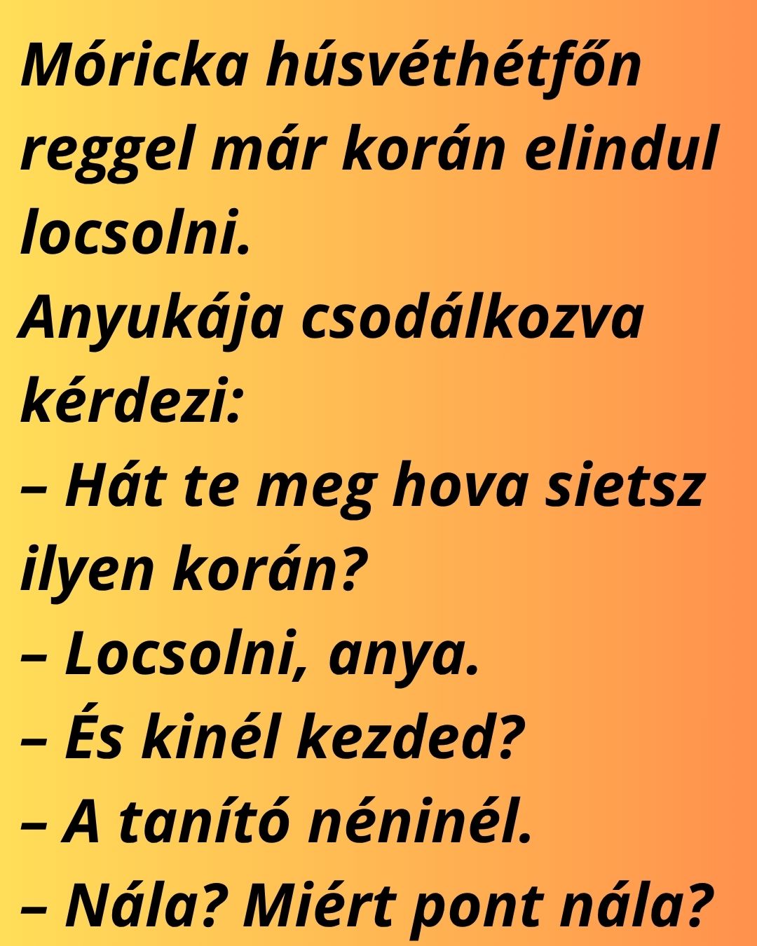– Mert pénteken ő mondta a suliban, hogy hétfőn mindenhol legyek ott időben.