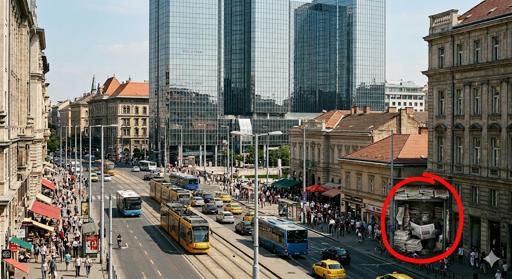 Első ránézésre egy teljesen átlagos, nyüzsgő városi utcakép, de van rajta egy részlet, ami abszolút nem odaillő. Én percekig néztem, mire leesett, mit kell keresni… 🤯
