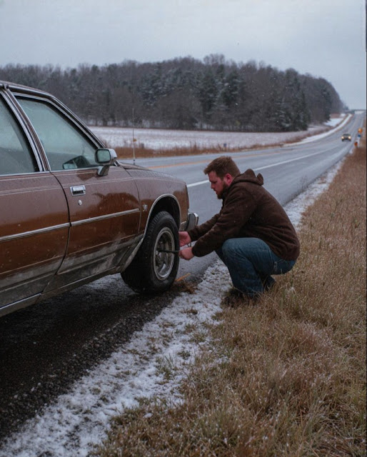Az autó úgy nézett ki, mintha túl sok telet túlélt volna. Mellette állt egy idős házaspár, vékony dzsekikbe burkolózva, amelyen a szél átfújt. A férfi tehetetlenül bámulta a teljesen leeresztett kereket. A nő a karját ölelte, annyira reszketett, hogy láttam, ahogy a hidegtől rázkódik. Fáradtságuk mindent elárult — nehéz, kimerült, megtört.