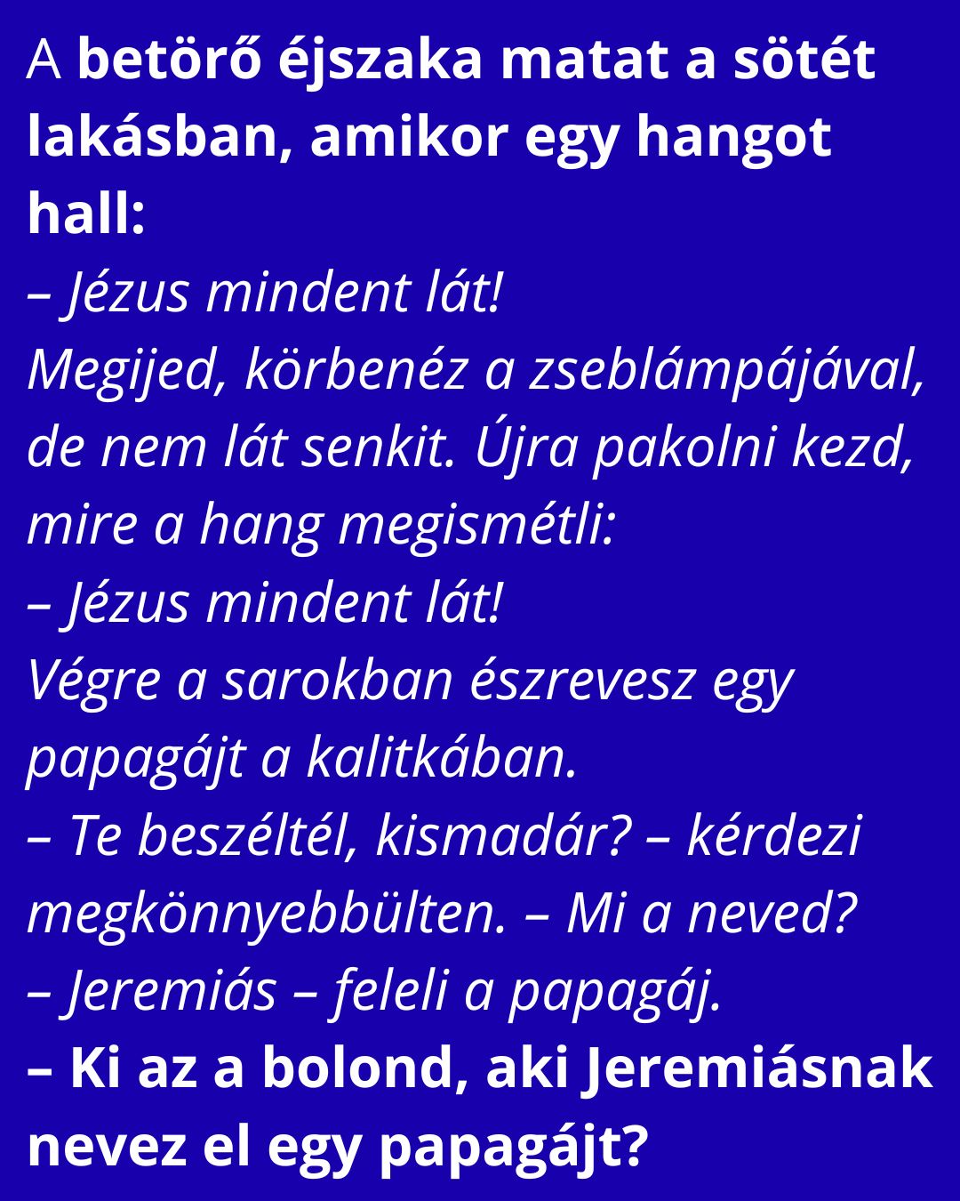 – Jeremiás – feleli a papagáj.