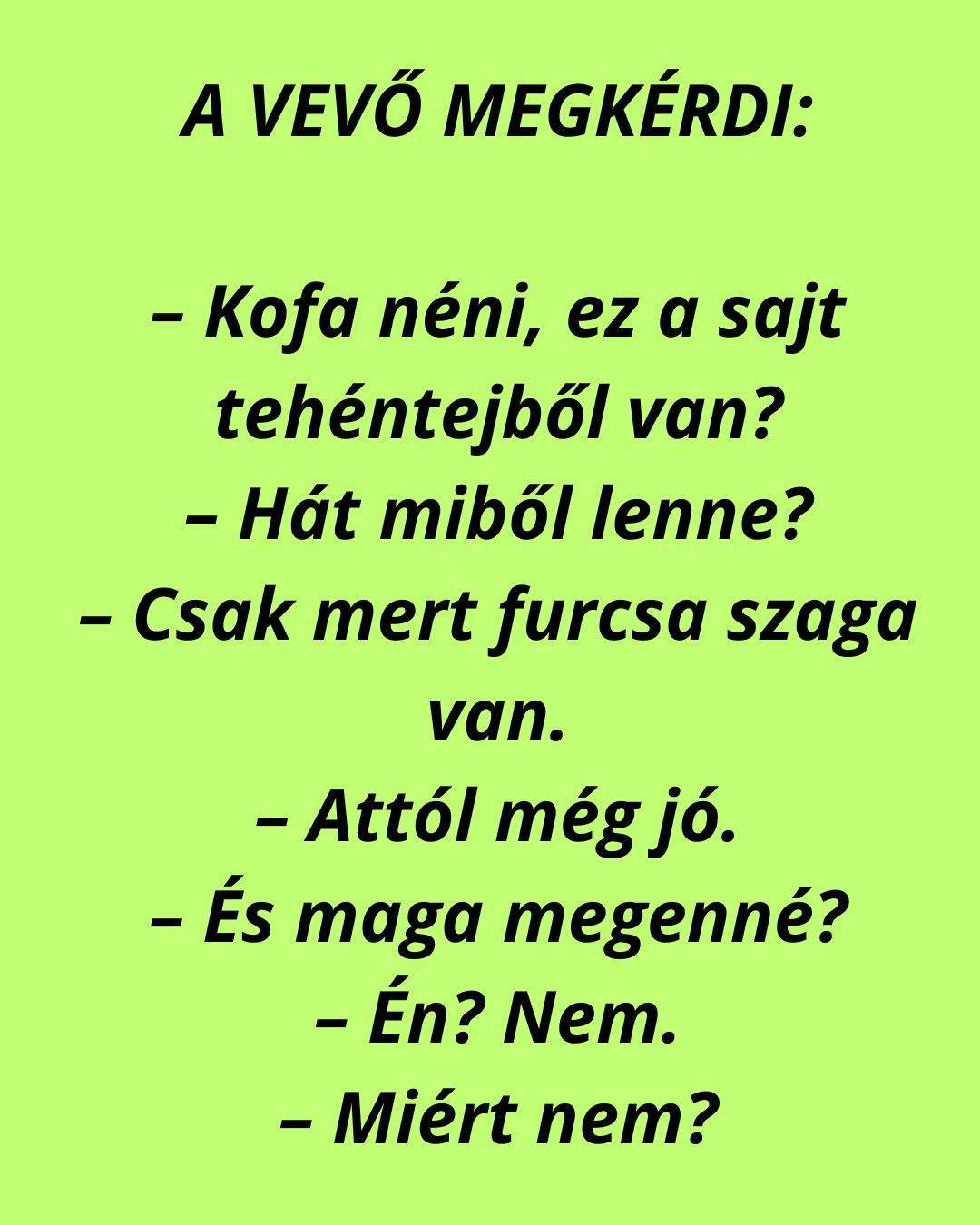 – Akkor ne tojást vegyen, hanem tyúkot, az vitatkozik ingyen.