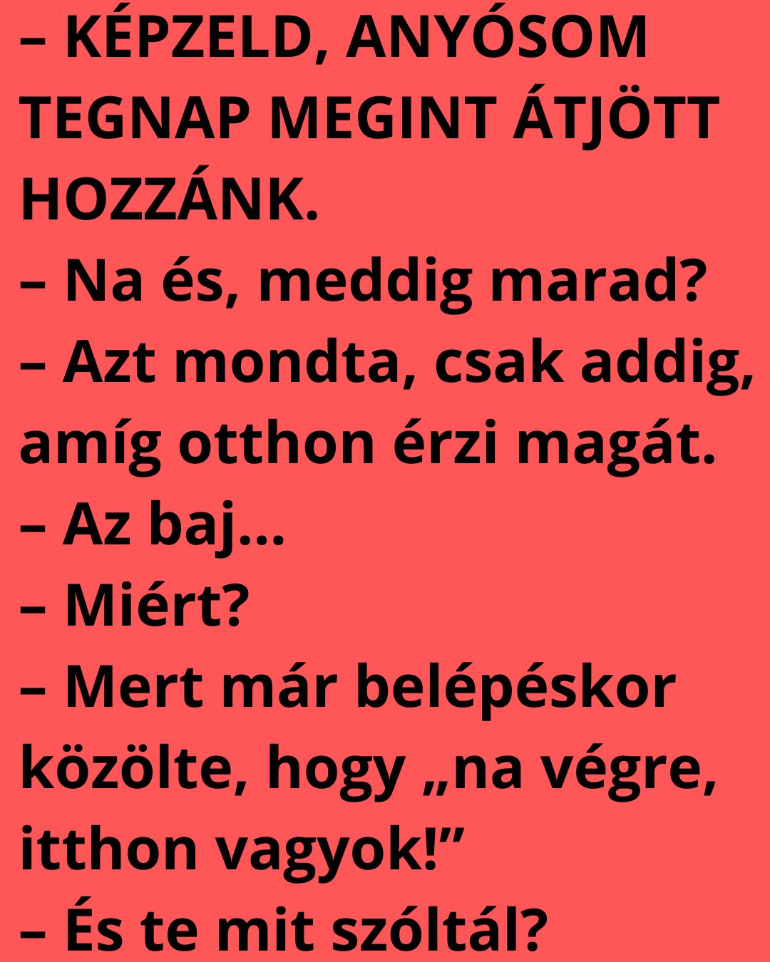 – Képzeld, anyósom tegnap megint átjött hozzánk.