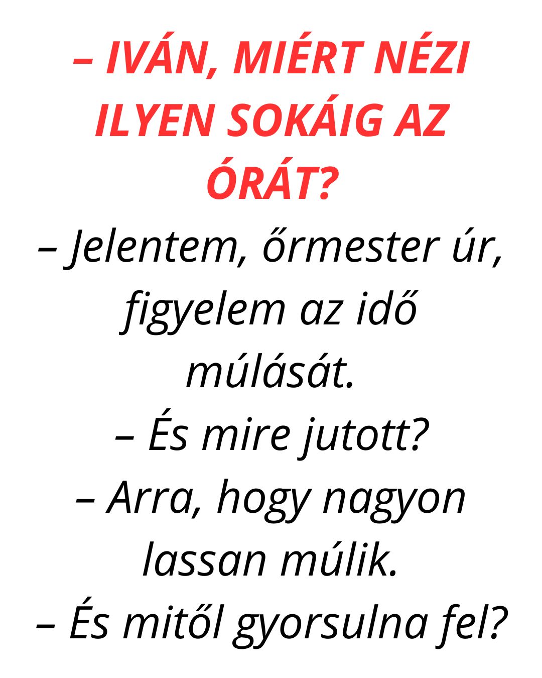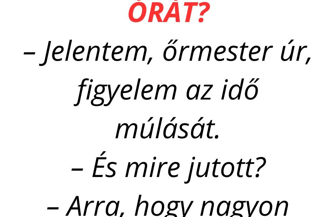 – Jelentem, őrmester úr, figyelem az idő múlását.